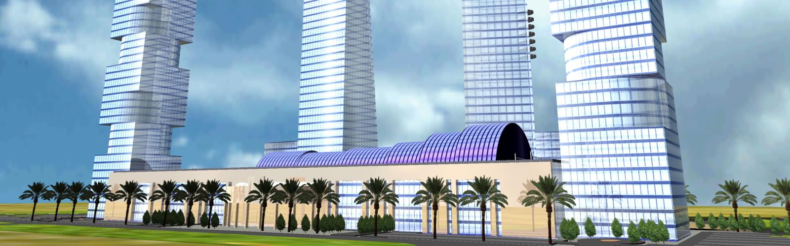 This is 344,000 sq. m. the mixed-use development at a major interchange on the airport road. It consists of four basement floors for parking and services, five-floor podium serving as a high-end mall and exhibition halls and four mid-rise towers of 35 floors each; two of them will serve as trade centers with commercial offices and exhibition facilities, one as a five-star hotel and the fourth as residential high-end suites.